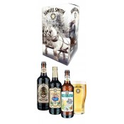 1 Gift Box consisting of a 550ml bottle each of Pure Brewed Organic Lager, Organic Chocolate Stout, Oatmeal Stout, a Samuel Smith pint glass, two coasters and a souvenir booklet.